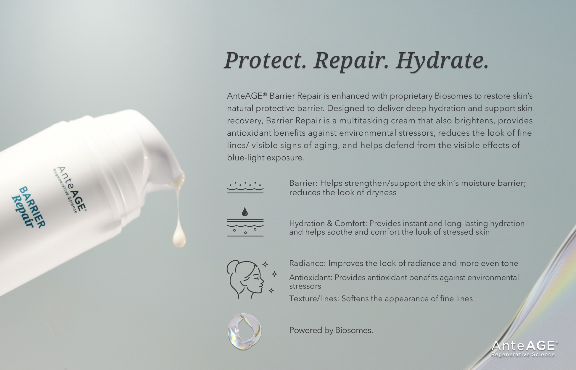 AnteAGE® Barrier Repair is enhanced with proprietary Biosomes to restore skin’s